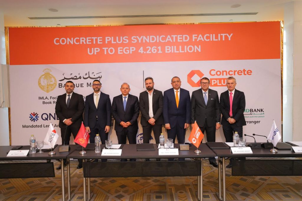 ﺑﺼﻔﺘﻬﻢ ﺍﻟﻤﺮﺗﺐ ﺍﻟﺮﺋﻴﺴﻲ ﻭ ﺍﻟﻤﻘﺮﺽ ﻭ ﻣﻴﺪﺑﻨﻚ ﺑﺼﻔﺘﻪ ﺑﻨﻚ ﻣﻘﺮﺽ ﻭ ﻣﺮﺗﺐ ﻋﺎﻡ ﺑﻤﻨﺢ ﺗﻤﻮﻳﻞ ﻣﺸﺘﺮﻙ ﺑﻤﺒﻠﻎ 4.261 ﻣﻠﻴﺎﺭ ﺟﻨﻴﻪ ﻣﺼﺮﻱ ﻟﺼﺎﻟﺢ ﺷﺮﻛﺔ ﻛﻮﻧﻜﺮﻳﺖ ﺑﻠﺲ ﻟﻠﻤﻘﺎﻭﻻﺕ ﻭ ﺍﻟﺼﻨﺎﻋﺔ ﻭﺫﻟﻚ ﺑﻐﺮﺽ ﺗﻤﻮﻳﻞ ﺟﺰﺀ ﻣﻦ ﻋﻤﻠﻴﺔ ﺗﻨﻔﻴﺬ ﺍﻋﻤﺎﻝ ﻭﺣﺪﺍﺕ ﻭ ﺷﺎﻟﻴﻬﺎﺕ ﺑﻤﺸﺮﻭﻉ ﺳﺎﻭﺙ ﻣﻴﺪ ﺑﺎﻟﺴﺎﺣﻞ ﺍﻟﺸﻤﺎﻟﻲ ﻭﻫﻮ ﺃﺣﺪ ﻣﺸﺮﻭﻋﺎﺕ ﻣﺠﻤﻮﻋﺔ ﻃﻠﻌﺖ ﻣﺼﻄﻔﻰ ﺍﻟﻘﺎﺑﻀﺔ.